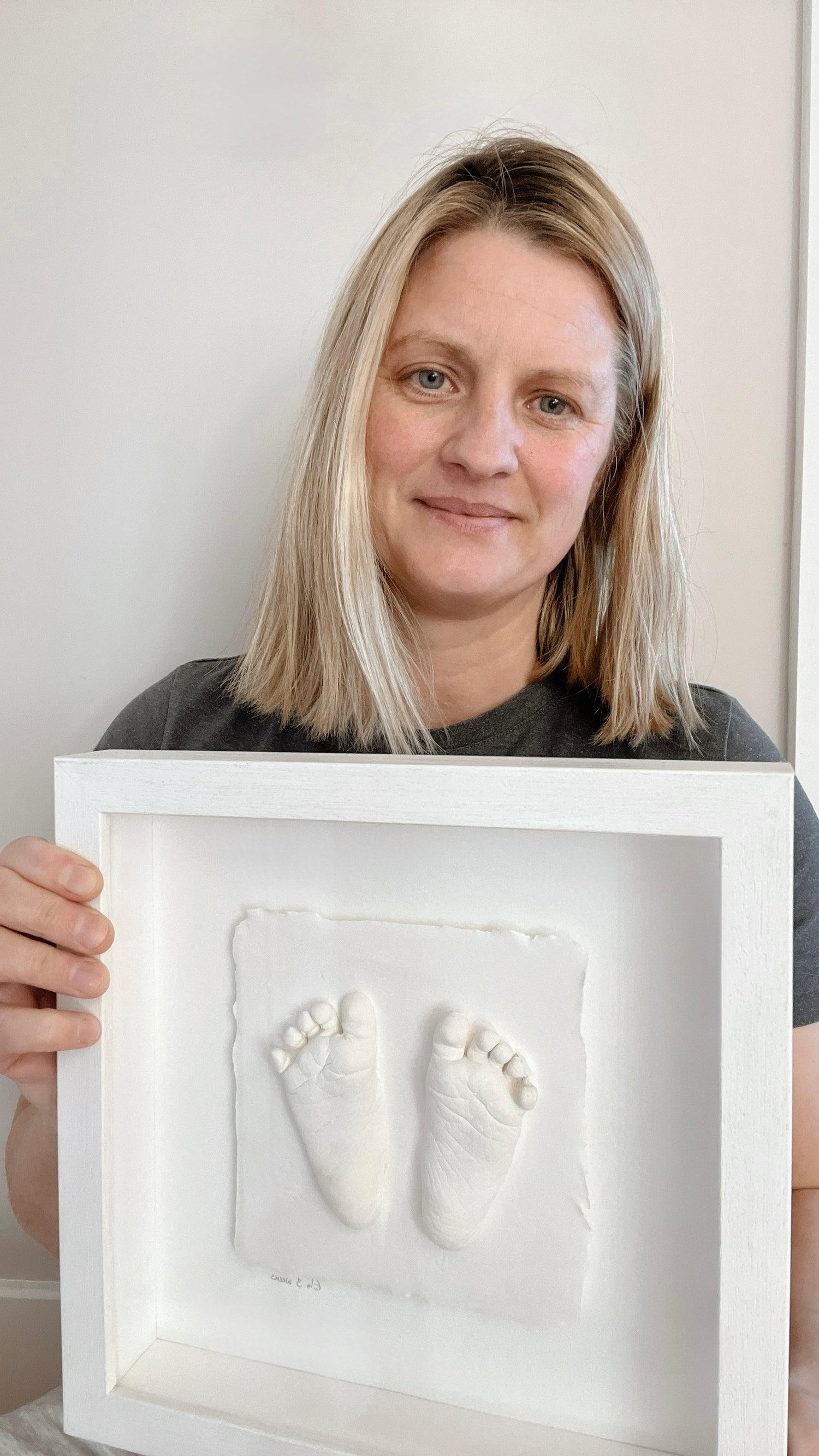 "One of my most prized posessions, I adore both the baby feet I had done for each child. Its such a quick and painless experience for baby and Chloe is amazing with them anyway. What takes a quick dip for each foot becomes this master piece a couple of weeks later. Can't recommend highly enough".