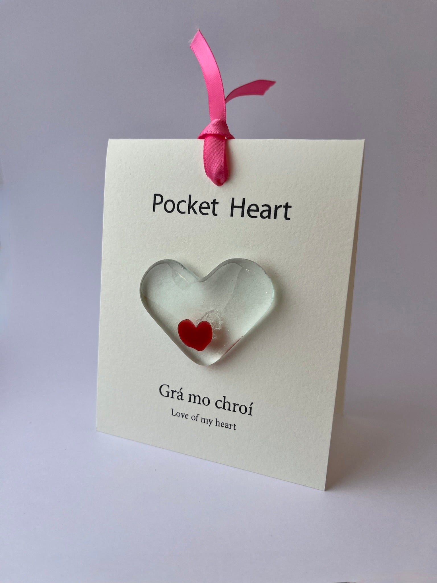 A love pocket heart with a hand painted red heart fused into the glass just for you.